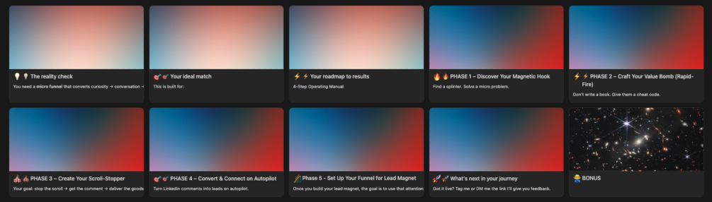 Friend, if I can do it, you can do it. I'm the guy who used to call IT for password resets! 😅 Everything in this system uses basic tools: Notion (it's like Google Docs), LinkedIn (you're already there), and LeadShark (which has a 5-minute setup). No coding, no complex integrations, no pulling your hair out. If you can write a social media post, you can build this funnel.
